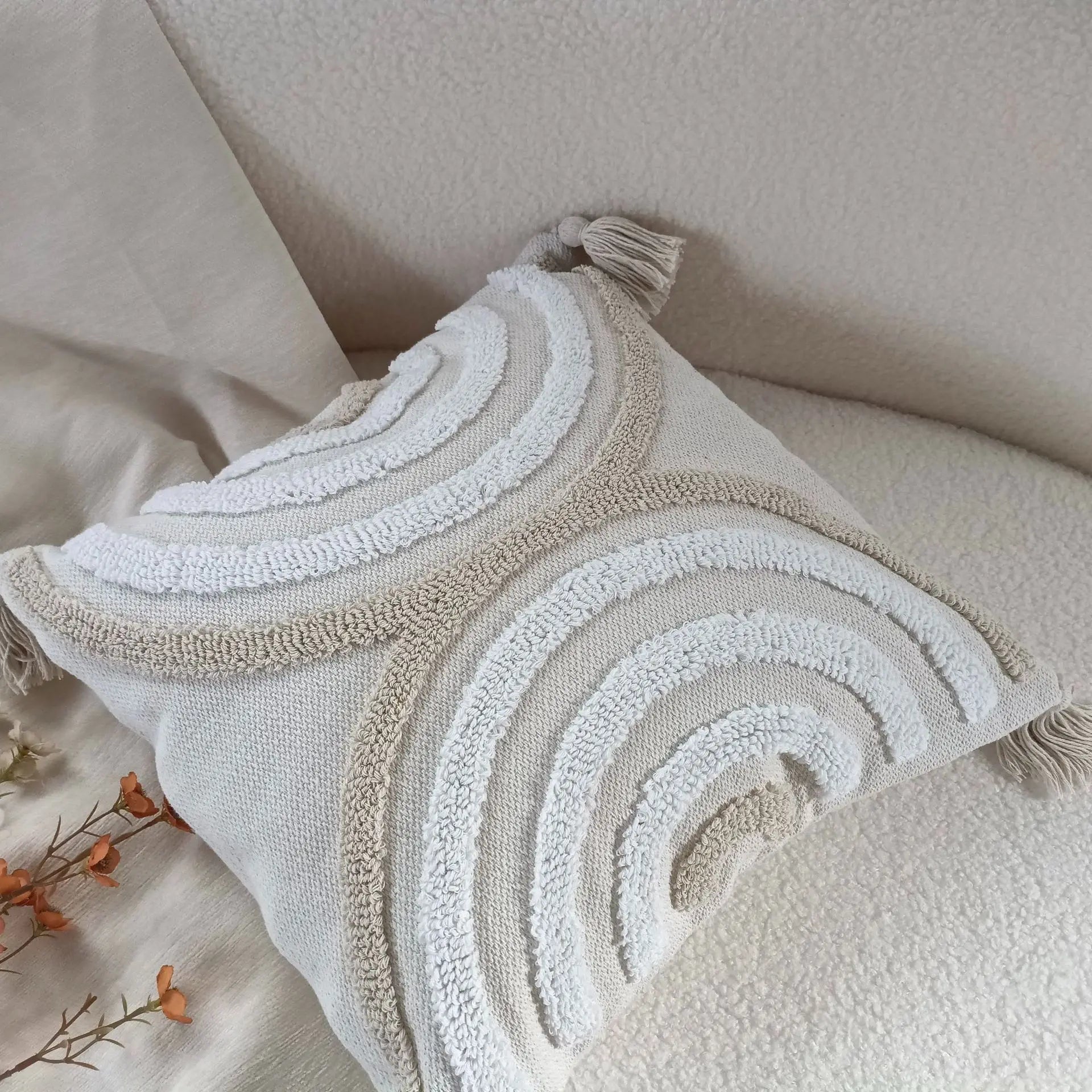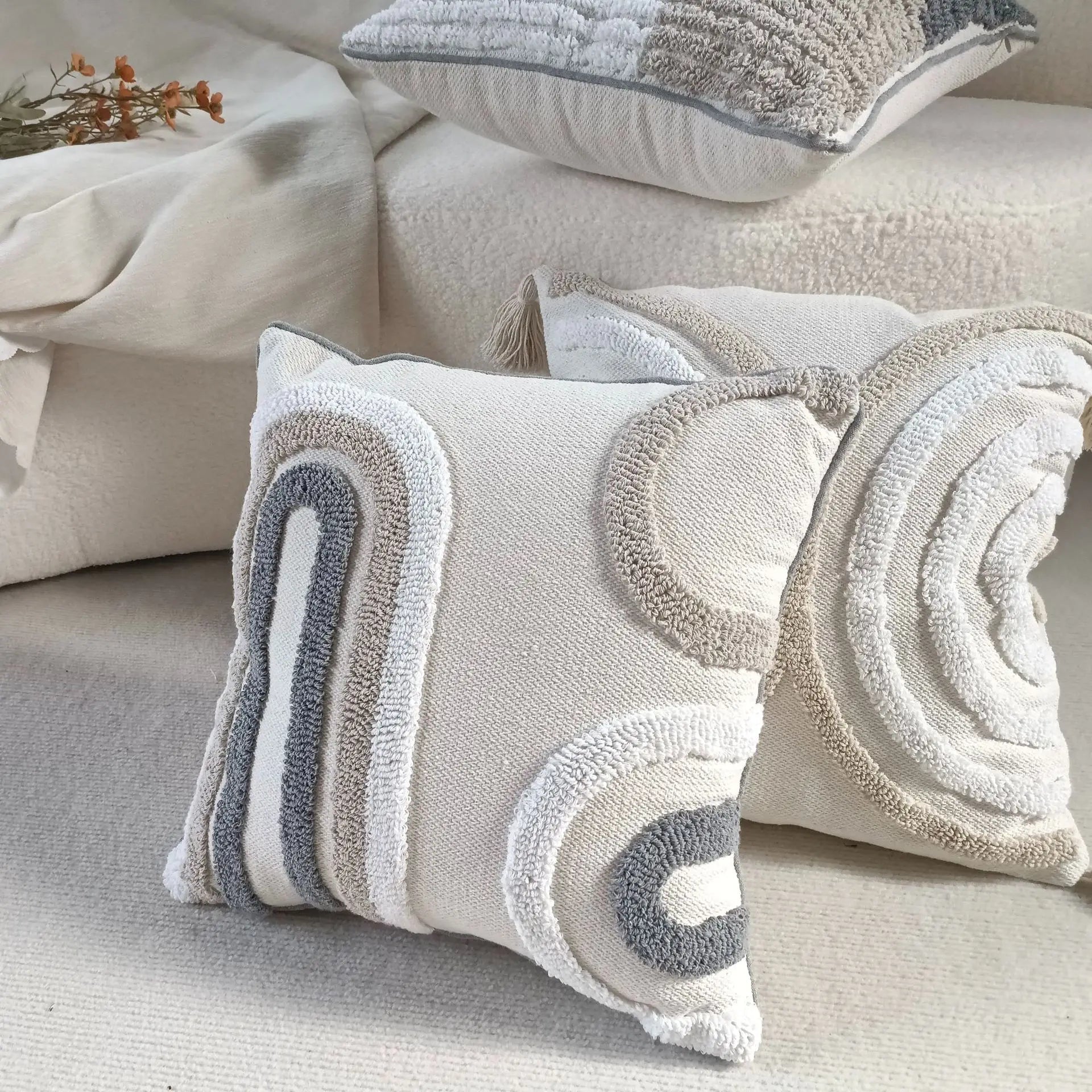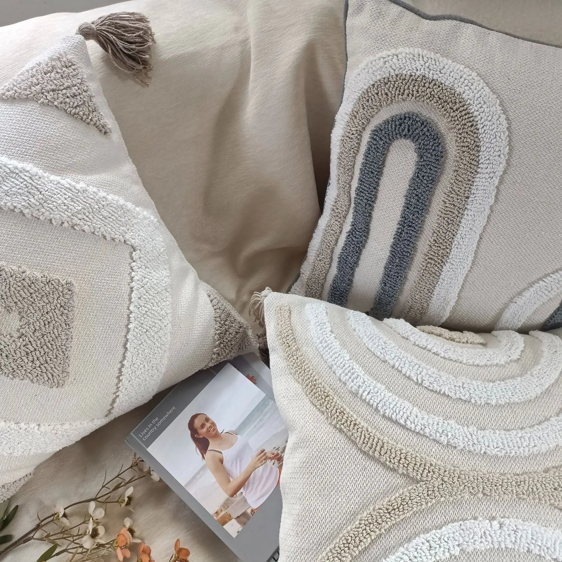 Beige-grauer Kissenbezug 2024, nordischer Stil, geometrisch getufteter Kissenbezug, moderne dekorative Kissen für Sofa, Wohnzimmer, Schlafzimmer