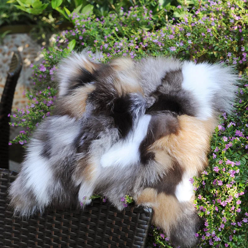 Natürliche Farbe, handgefertigter Patchwork-Sofa-Kissenbezug aus echtem Fuchsfell