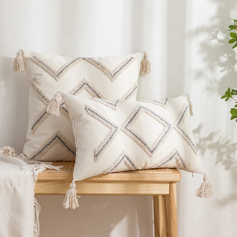 Wabi Sabi Geometric Embroidery Tassel Pillow Cover