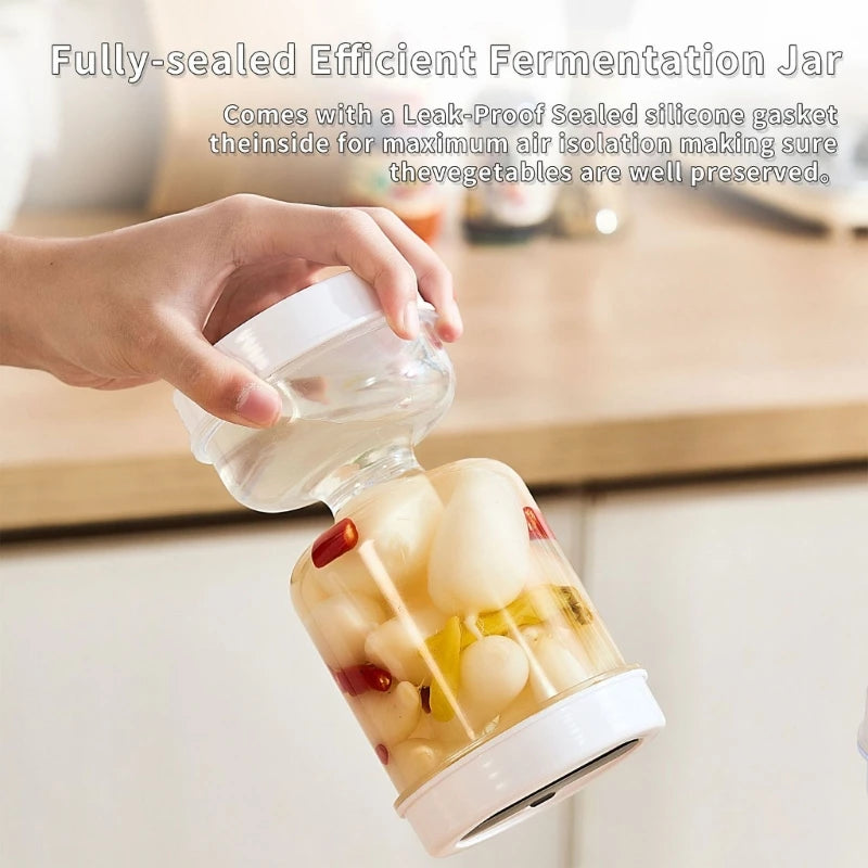 Drehen Sie einfach das Sanduhr-Kimchi-Glas, um die Flüssigkeit vom Kimchi zu trennen, damit Sie das Kimchi leicht greifen können, ohne Ihre Hände nass zu machen.