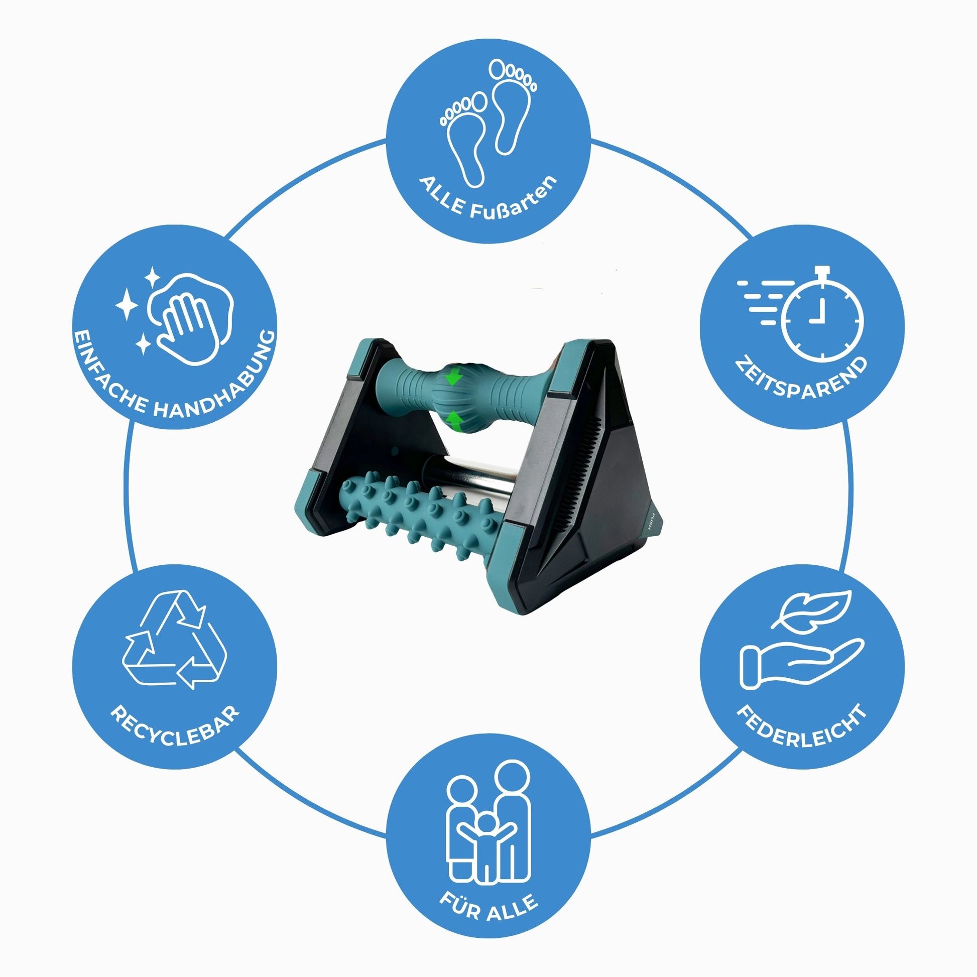 Der Eisroller kühlt sofort und beruhigt gestresste Füße, während die zwei Massageroller gezielt Verspannungen lösen. Einfach rollen, loslassen und in Sekunden Erleichterung spüren – genau dann, wenn deine Füße es brauchen.