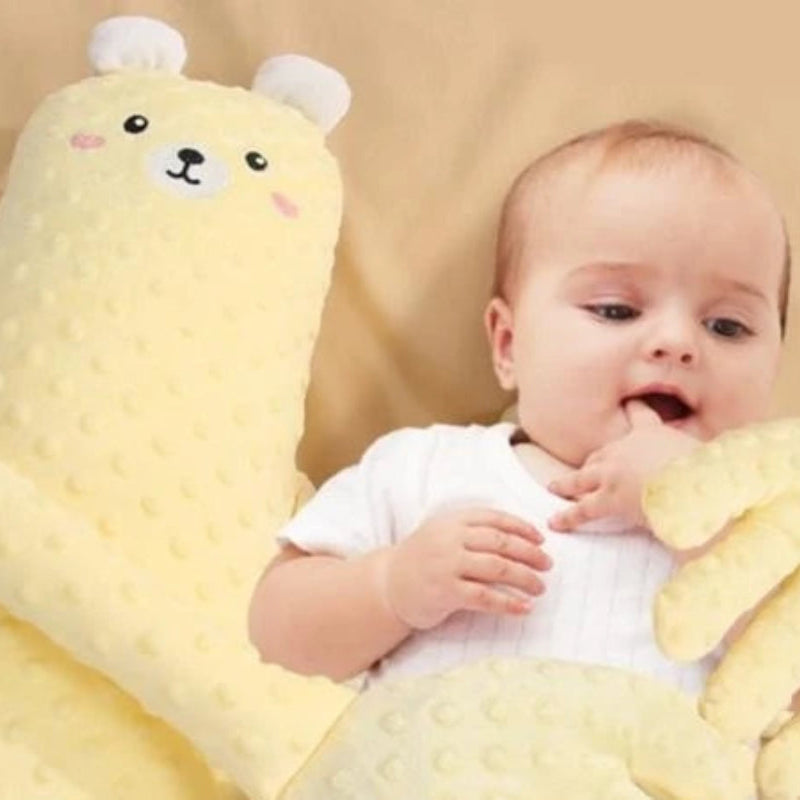 Das sanft gewichtete Beruhigungskissen vermittelt Wärme, Sicherheit und Geborgenheit – fast wie in Mamas Armen. So kann dein Baby sich schneller beruhigen und entspannter schlafen.