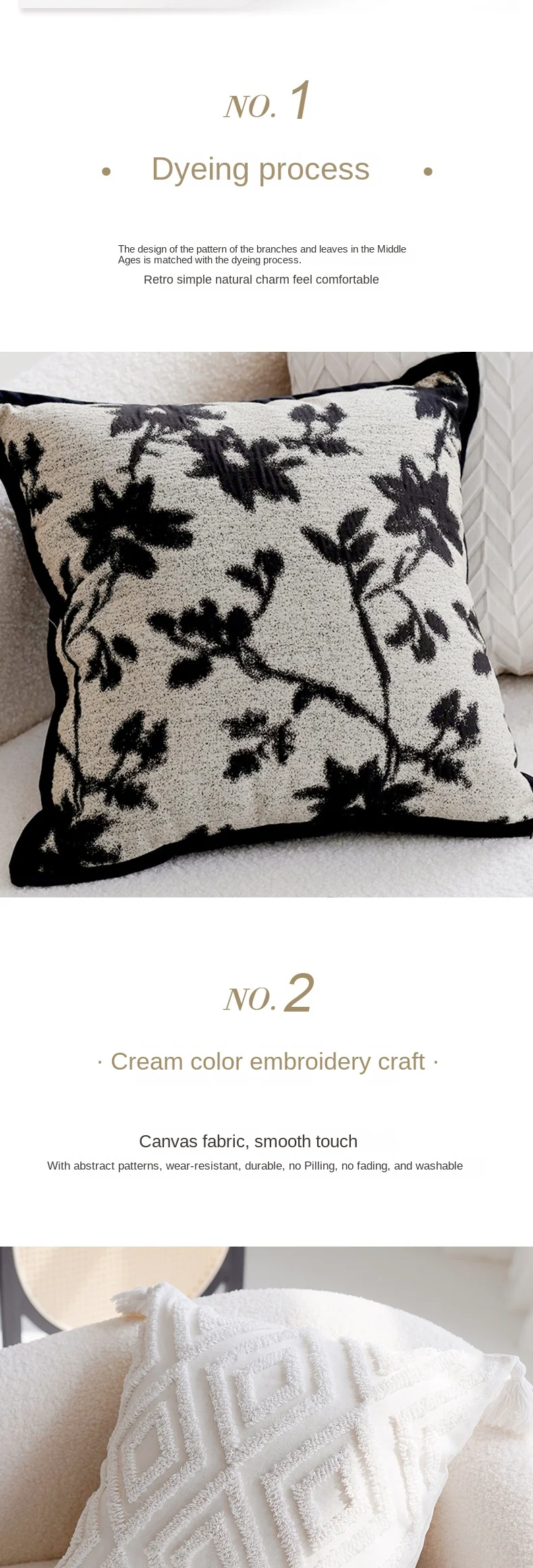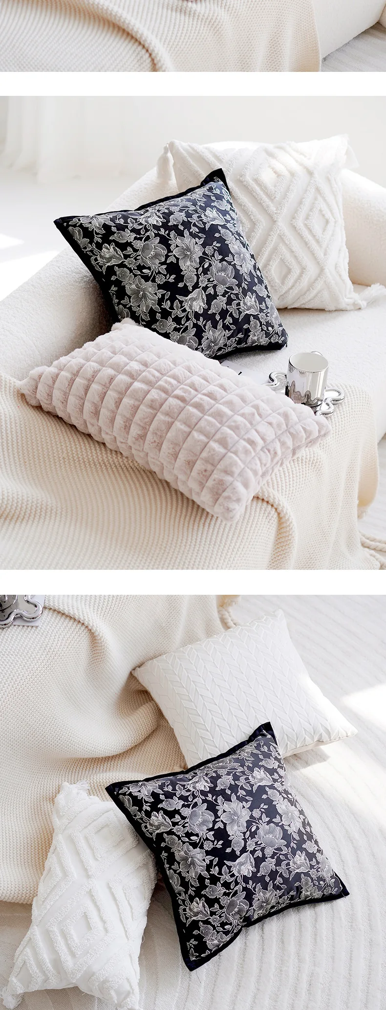 Retro Blumenkissenbedeckung, moderne und minimalistische Schwarz -Weiß -Kissen, NS,