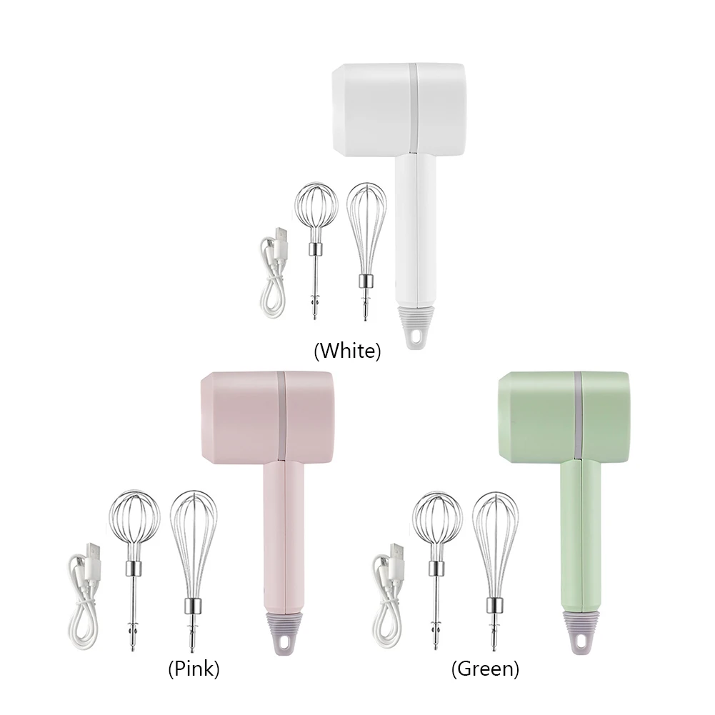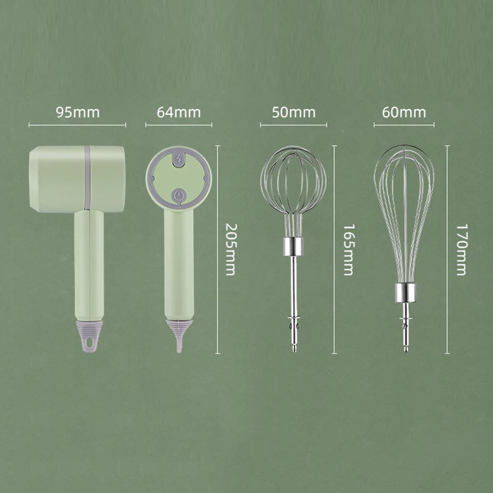 Feature: 1. Perfect Kitchen Helper: What you get: Whisk, stirring rod and USB charging cable, the best choice for your kitchen tools. 2. USB Charging Interface: Long-lasting battery life and more practical, 60-second high-speed mixing, delicious without waiting. 3. Easy to Install & Clean: You can easily install the various parts of the blender. The accessories can be washed with water or in the dishwasher (do not partially submerge the motor). 4. Comfortable Handle: Non-slip handle design, comfortable to hold. All food-contact materials are BPA-free, food-grade, so you can make and enjoy meals with your family with confidence. 5. Easy to Use: Waterproof and wireless portable design, compact and portable, easy to use. Whisk with 2 stirring rods, powerful motor, high speed. Specification: Power (W): 20W Voltage (V): 5V Structure: Hand Held Feature: CordLess Model Number: Egg Beater Housing: Plastic Accessories: Wire Whip Dimensions (L x W x H (Inches): 3.74x2.52x8.07in Number of Speed Settings: 3 Speeds Color: green, white, pink Size: Egg beater: About 95x64x205mm/3.74x2.52x8.07in Stirrer: About 165x50mm/6.5x1.97in, 170x60mm/6.69x2.36in Material: Plastic + stainless steel Battery: 1500mAh Power: 20W Charging time about: 4 hours Speed regulation: 3 gears adjustable Note: Due to the different monitor and light effect, the actual color of the item might be slightly different from the color showed on the pictures. Thank you! Please allow 1-2cm measuring deviation due to manual measurement. ![]()